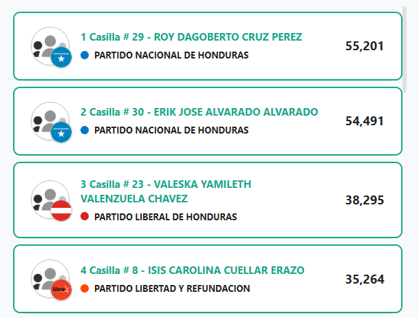 - Roy Dagoberto Cruz Pérez (Partido Nacional)
