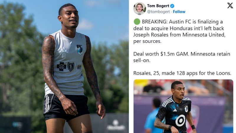 La información la confirmó el periodista estadounidense, Tom Bogert, quien además reportó que Austin FC pagará 1.5 millones de dólares (39,519,660 lempiras) a los Loons para comprar a Rosales.