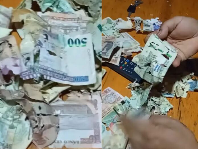 El hecho fue dado a conocer a través de un video publicado en su cuenta de TikTok, donde mostró el estado del dinero, completamente destruido e inservible por la acción de los roedores.