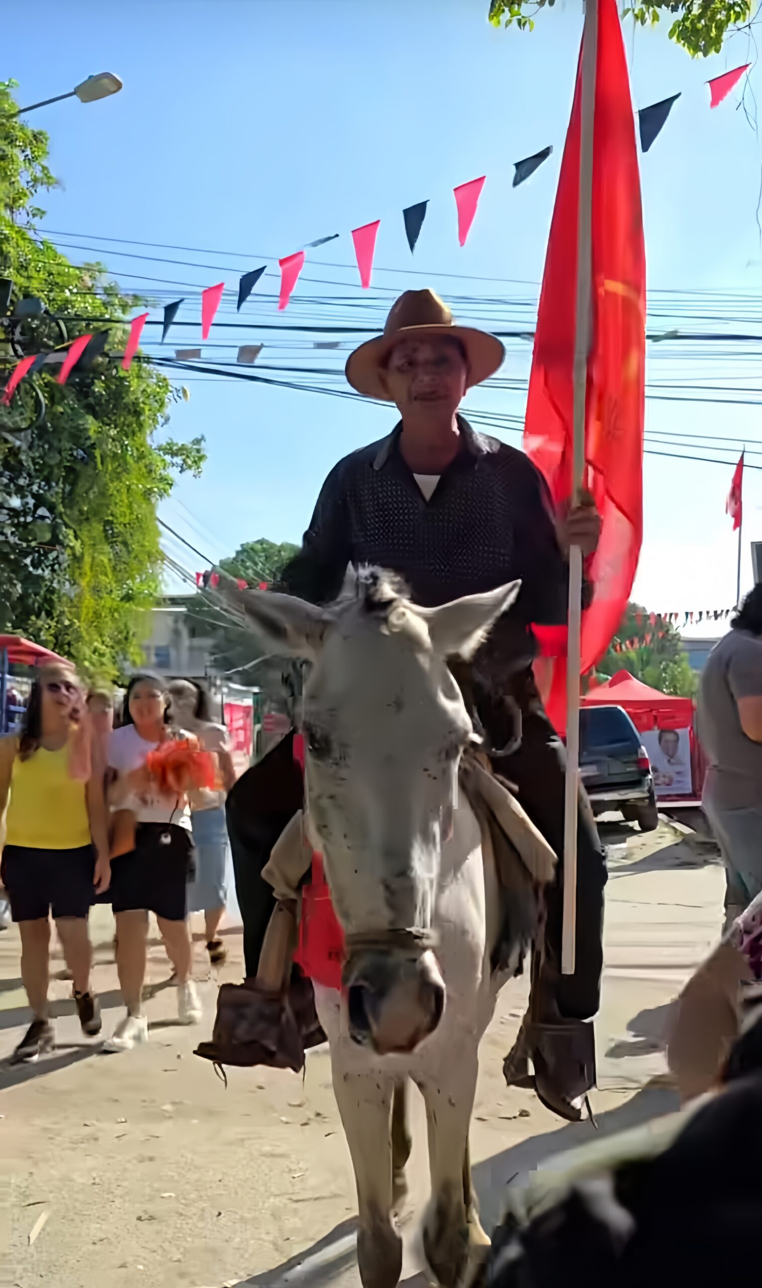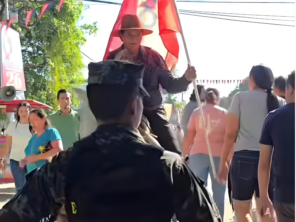 El hombre, vestido con sombrero y con una actitud visiblemente entusiasta, sorprendió a todos los presentes al acercarse al portón principal a lomos del equino. Esta inesperada llegada generó incomodidad y asombro entre los votantes que pacientemente hacían fila para ingresar al centro educativo.