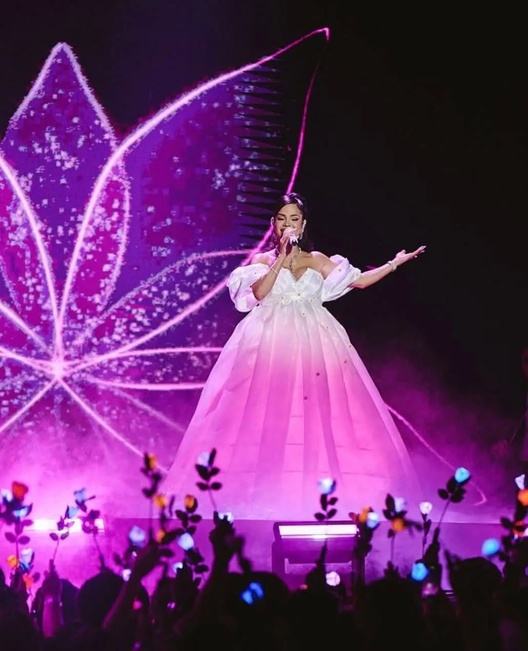 Además de revelar el género de su bebé, Natti Natasha subió al escenario para presentar su nuevo sencillo musical. Justo mientras interpretaba la canción, las luces y efectos especiales se iluminaron de color rosa, revelando que está en la dulce espera de una niña.