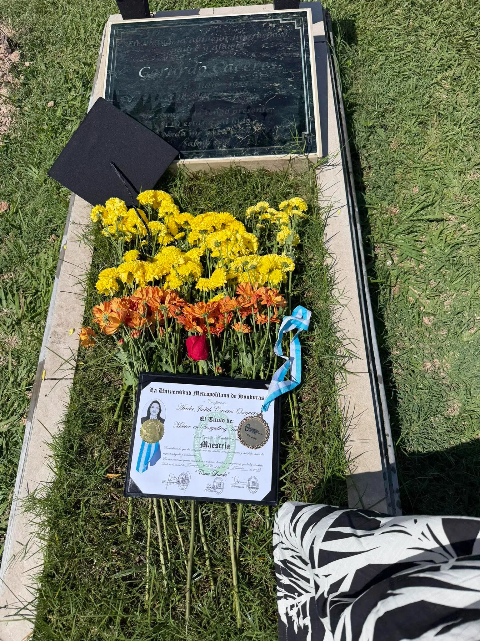 En la publicación escribió: «hoy (lunes 3 de noviembre), le llevé a mi papi mi título y medalla, físicamente no pudo estar en mi graduación, pero sé que está feliz de ver a su hija cumplir sus sueños».