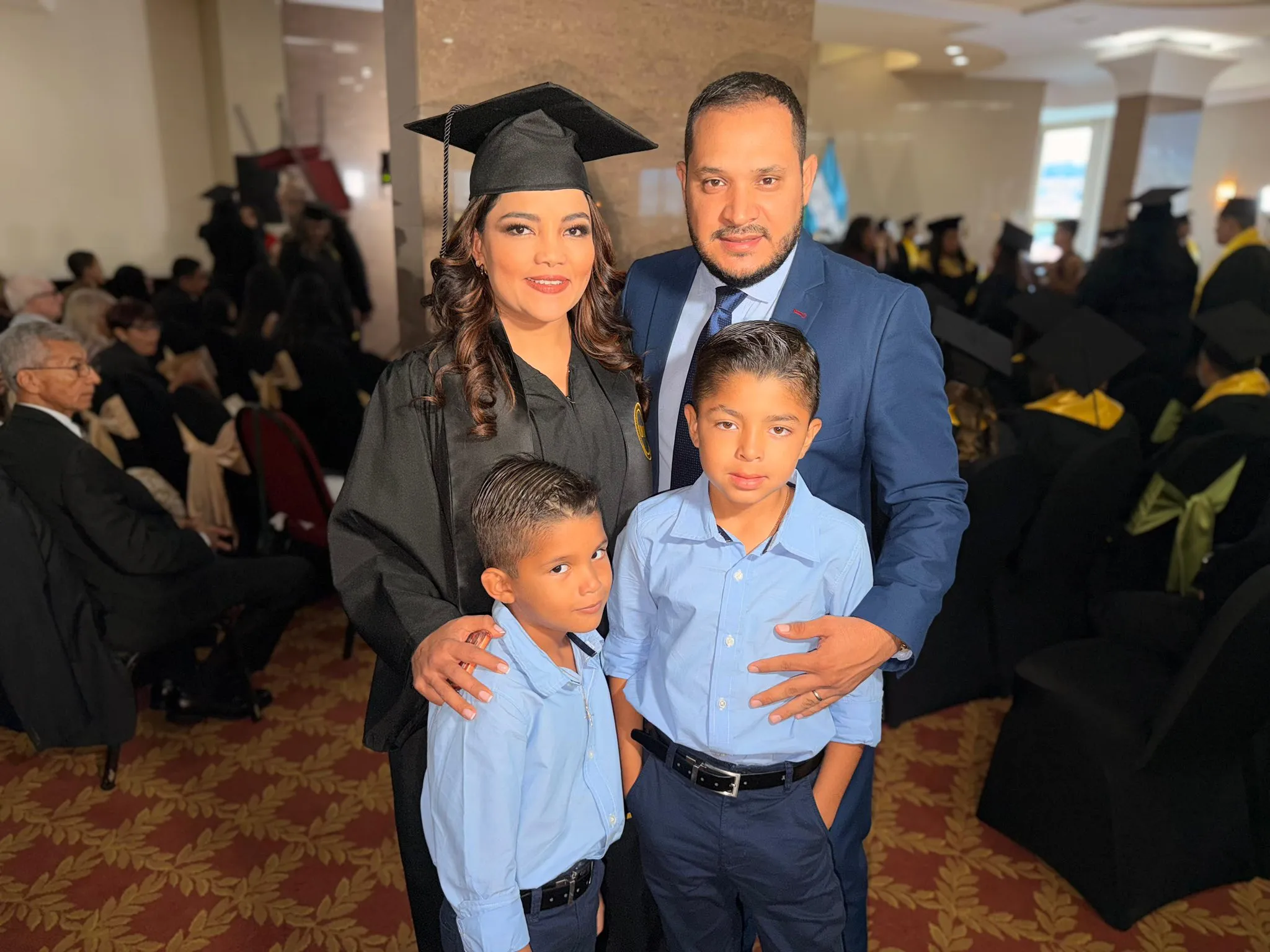 A través de sus redes, Ariela mostró fotografías del emotivo momento de la ceremonia de graduación, donde la acompañaron su madre, doña Mery; su esposo, el también periodista Dennis Andino; y sus hijos, Santiago y Mateo.