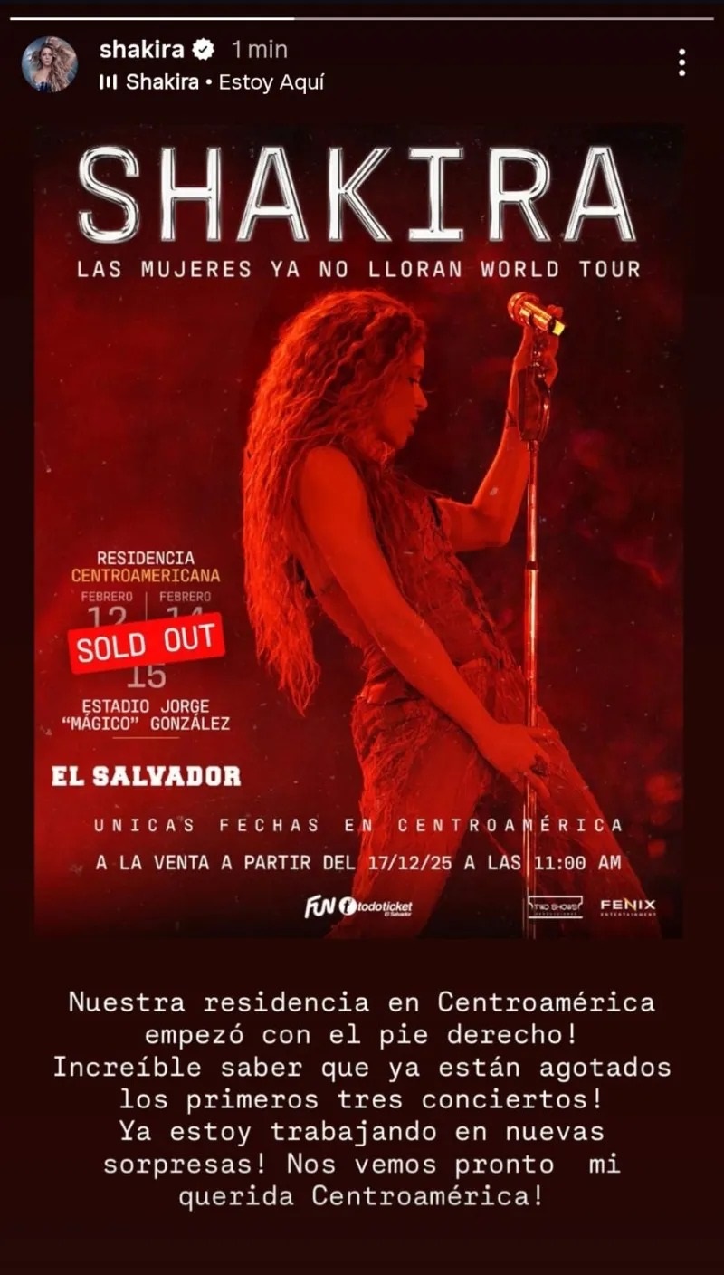 Shakira celebró la noticia a través de sus redes sociales con un mensaje lleno de gratitud para su audiencia. La cantante afirmó que su paso por Centroamérica comenzó con el pie derecho y confesó que ya prepara sorpresas especiales para estas presentaciones. Además, la estrella destacó que el cariño de sus fans la motiva a trabajar con más entusiasmo en los detalles de su nuevo espectáculo.