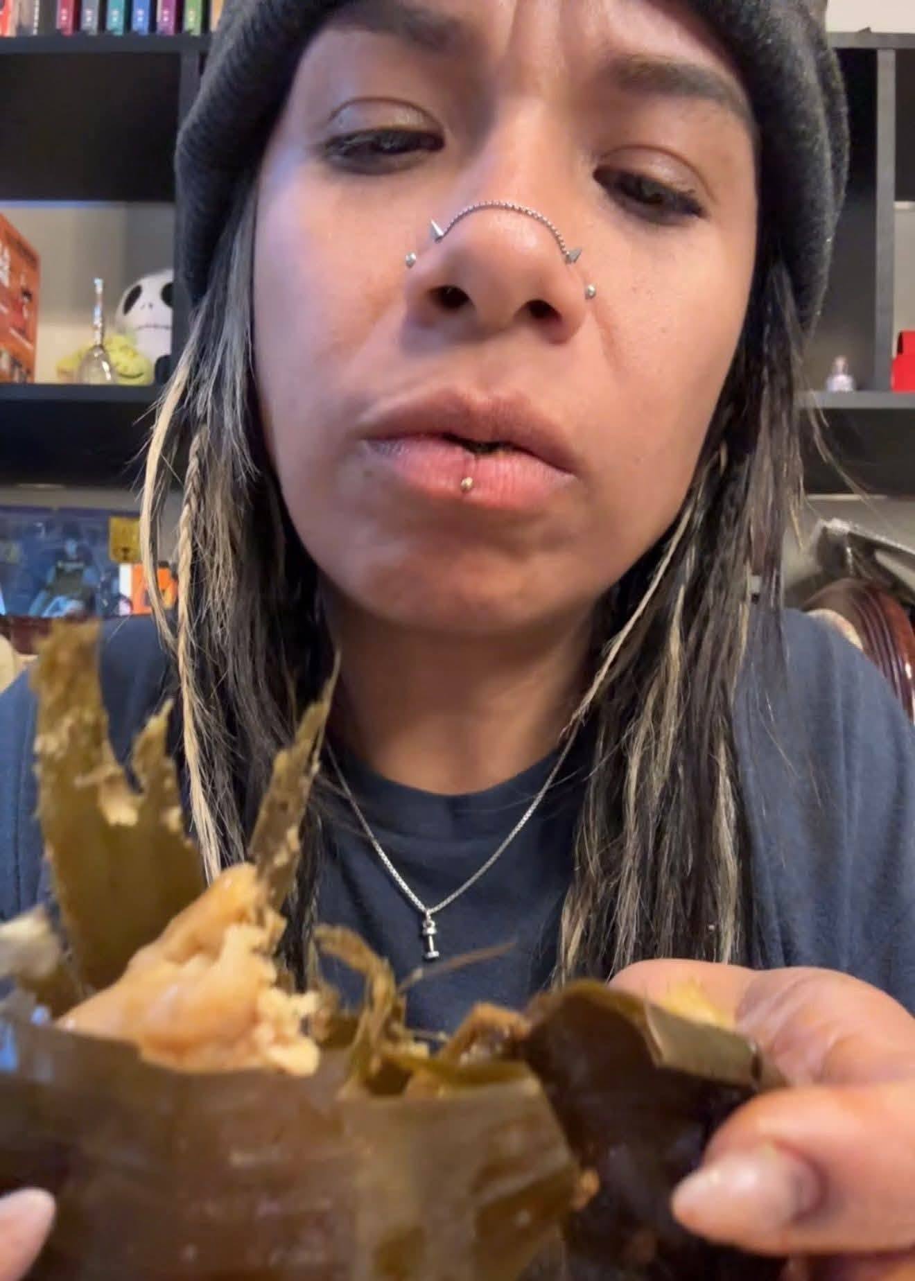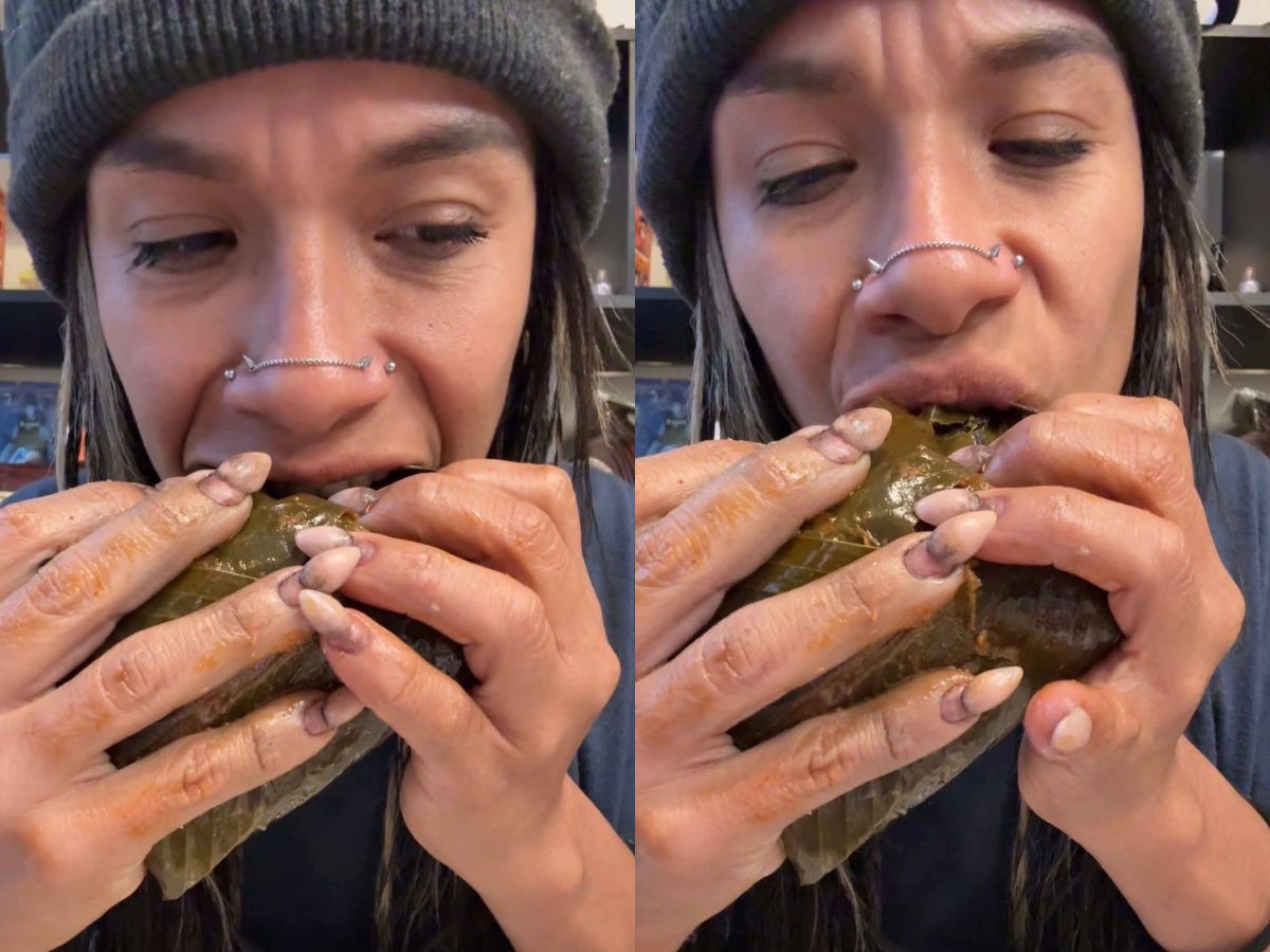 Según relató la creadora de contenido en el mismo video, se estaba comiendo un tamal tradicional de Guatemala que alguien le había regalado.