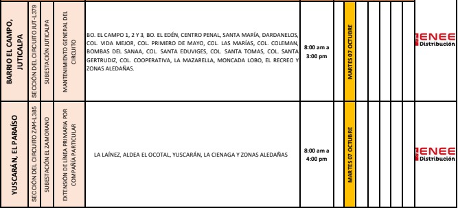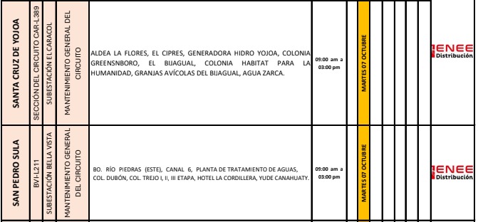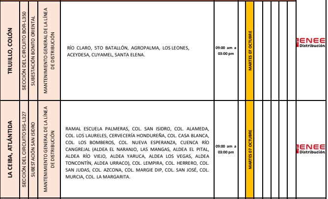 Redacción. La Empresa Nacional de Energía Eléctrica (ENEE) informó, a través de sus canales oficiales, que este martes 7 de octubre se realizará una serie de cortes programados que afectará a varios sectores del país.