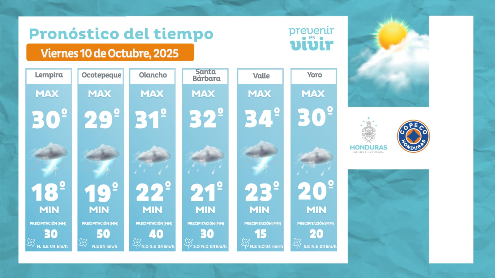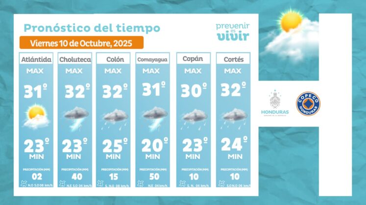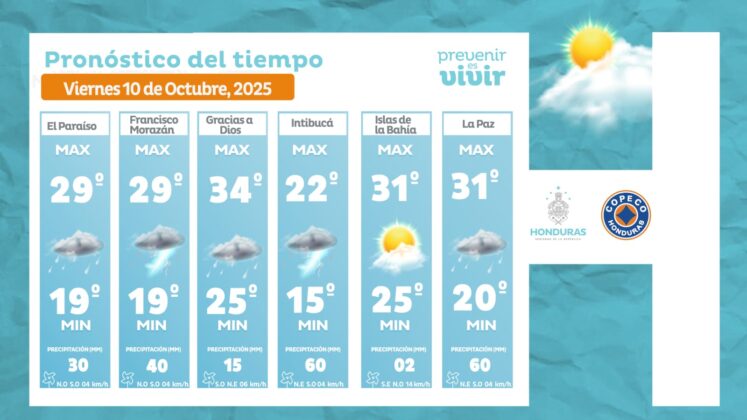 - Tegucigalpa: 29° como máximo, 19° como mínima.