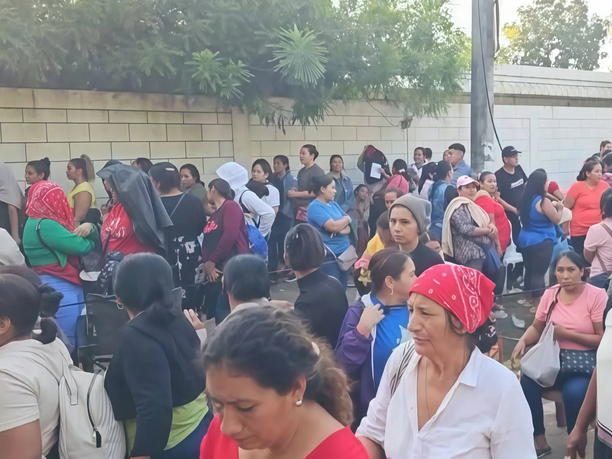 Martha narró la larga espera y la situación de los beneficiarios. «Hasta ahorita, casi al mediodía, vino el banco con el dinero y todavía estamos aquí. Hay gente que está desde el sábado durmiendo, que han dormido y todavía no les han entregado nada».