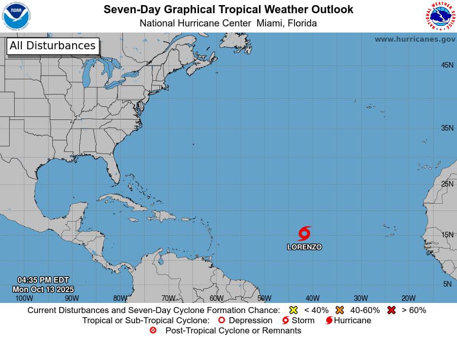Actualmente, la temporada ciclónica 2025 mantiene varios sistemas bajo vigilancia tanto en el Atlántico como en el Pacífico, y Lorenzo es uno de ellos. La prioridad de las autoridades es informar oportunamente sobre su evolución, alertando a la población únicamente si llegara a representar un riesgo real.
