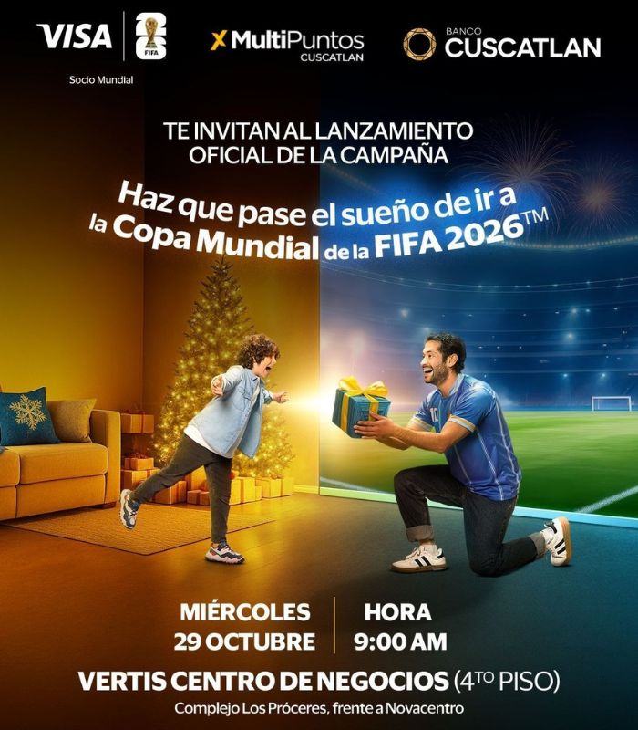 La promoción está vigente del 20 de octubre de 2025 al 1 de enero de 2026 y ofrece atractivos premios para los clientes que utilicen sus Tarjetas de Crédito VISA CUSCATLAN: dos paquetes dobles todo incluido para disfrutar partidos de la etapa de grupos y cuartos de final, y un millón de MultiPuntos© CUSCATLÁN repartidos entre 10 ganadores, con 100,000 puntos cada uno.