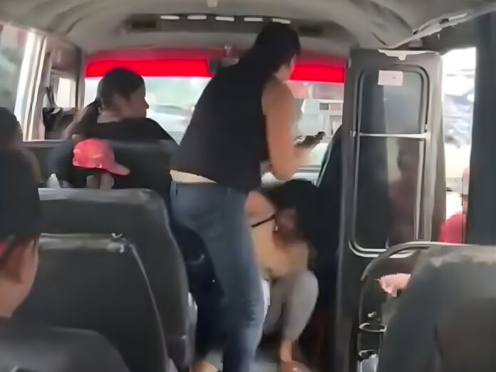 Según testigos, la mujer agredió físicamente a otra joven mientras ambas discutían por un conductor de la unidad, quien al parecer es padre de familia.