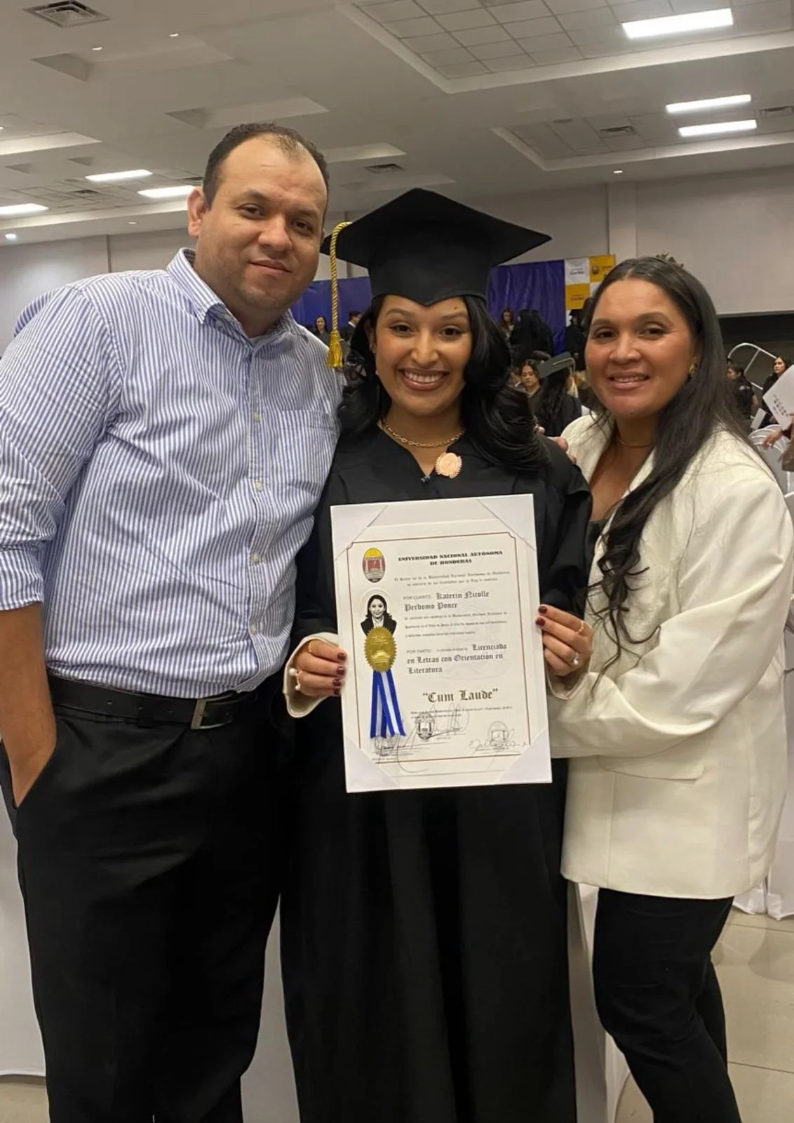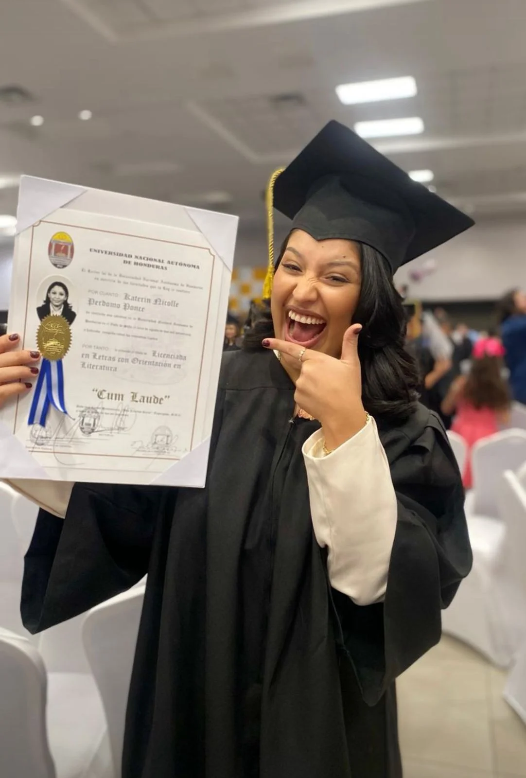 La ceremonia se realizó esta mañana en la Cámara de Comercio e Industrias de Cortés (CCIC). En ese escenario, Katerin vio reflejados los años de esfuerzo, noches de estudio y el amor constante que ha dedicado. Escuchar su nombre entre los estudiantes distinguidos fue un momento que emocionó a sus cercanos.