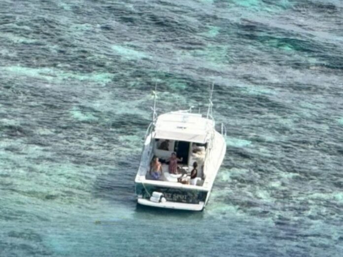 La nave, que viajaba desde Belice hacia Islas de la Bahía, encalló en un arrecife a lo largo de su ruta. A bordo de la embarcación se encontraban tres personas y un canino, quienes fueron localizados por las autoridades y se encuentran fuera de peligro.