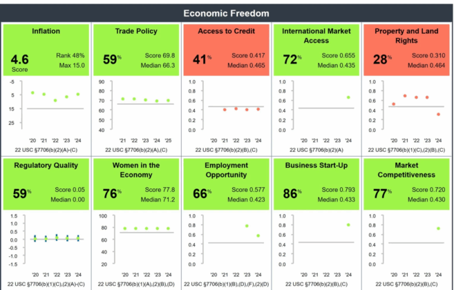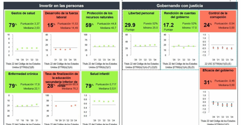 La MCC analiza a los países a través de 22 indicadores agrupados en tres áreas: Libertad Económica, Gobernar con Justicia e Inversión en las Personas.