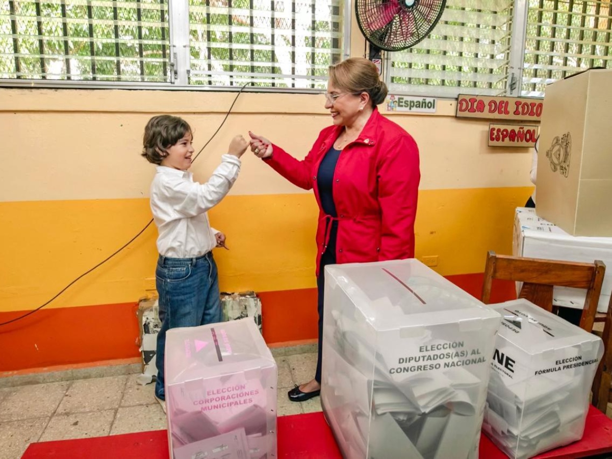 Castro llegó al centro de votación alrededor del mediodía, también acompañada de su esposo, el expresidente y actual coordinador de Libre, Manuel Zelaya. Su nieto se volvió el coprotagonista del momento más emotivo del día. Tras emitir su voto, la presidenta expresó sentirse satisfecha por los logros de su administración, afirmando: “Misión cumplida… Honduras está lista para despegar. Vamos por buen camino. Honduras hoy está fortalecida con sus instituciones del Estado.”