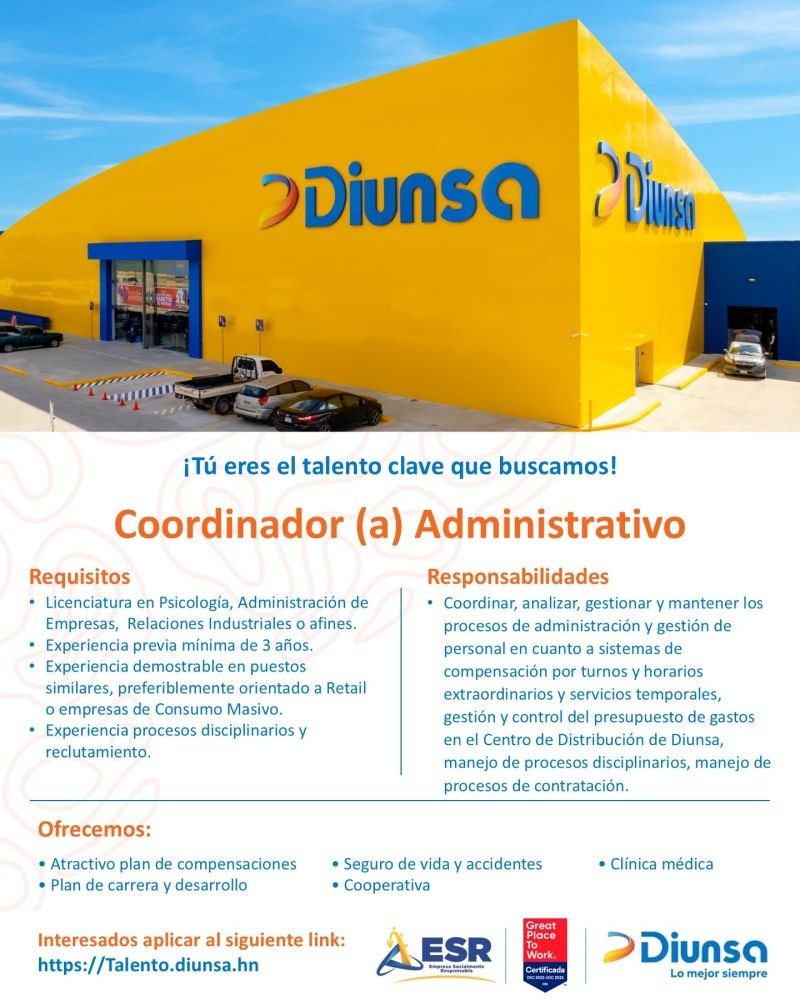 También ofrece plazas de Oficial de Negocios para San Pedro Sula y El Progreso. En este caso, se solicita que los aspirantes sean pasantes de al menos el 50 % de la Licenciatura en Administración de Empresas, Gerencia de Negocios o carreras afines, y que cuenten con uno a tres años de experiencia como oficial de créditos, oficial de negocios, analista de créditos, ventas o atención al cliente.