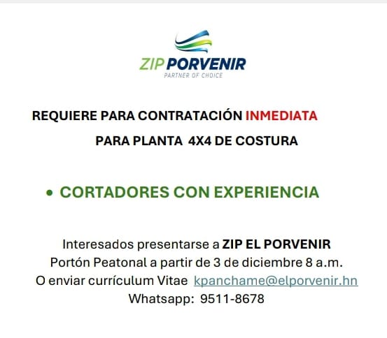 De su lado, la marca Van Heusen abrió plazas de asesor de moda por temporada navideña en San Pedro Sula y Tegucigalpa.