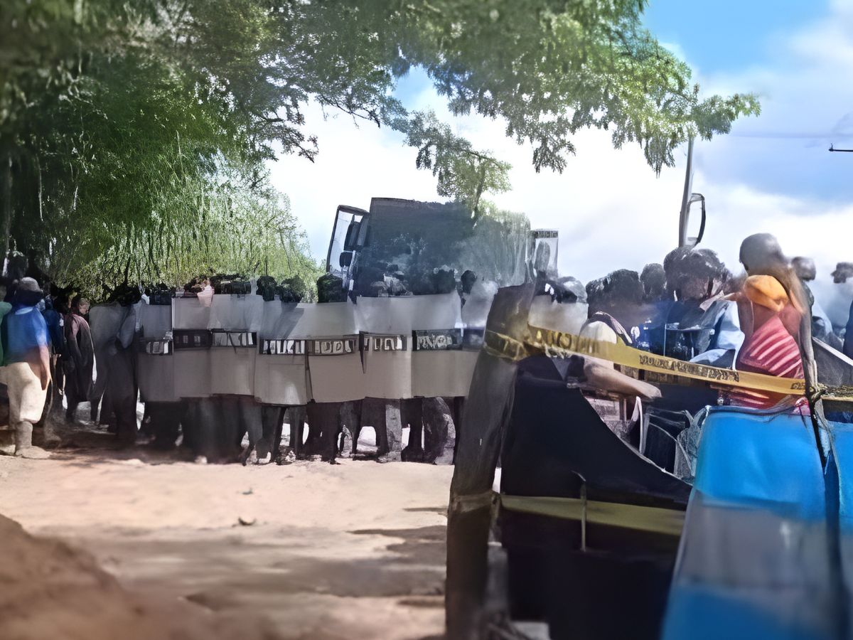 Testigos señalaron que los pobladores han lanzado piedras y otros objetos contra los agentes, dificultando el avance del operativo.