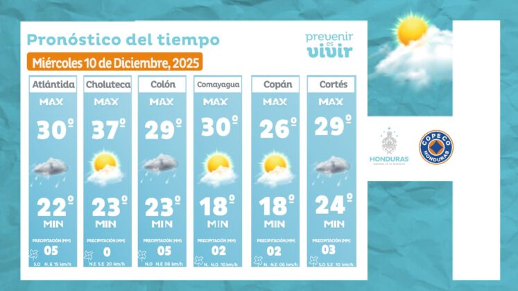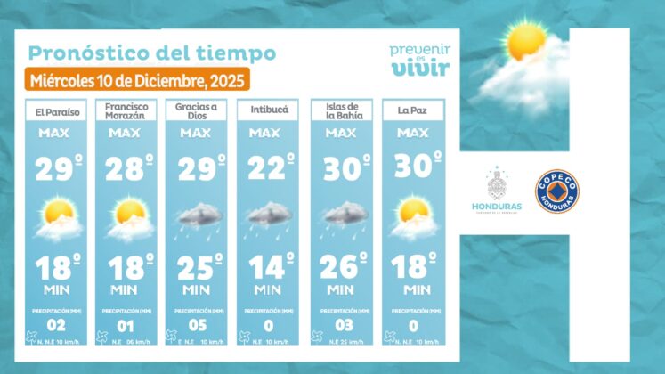 - San Pedro Sula: 29° como máximo, 24° como mínima (03 milímetros).