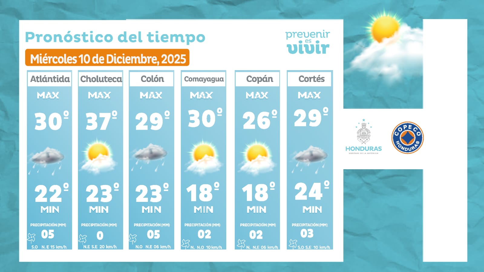 - La Ceiba: 30° como máximo, 22° como mínima (05 milímetros).