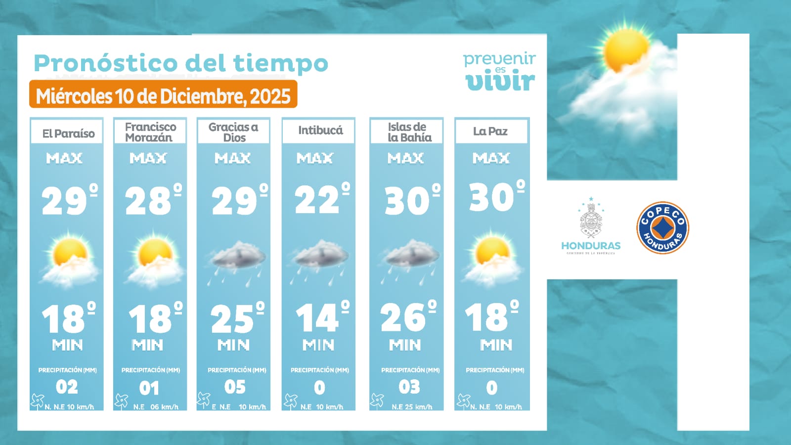 Redacción. El Centro Nacional de Estudios Atmosféricos, Oceanográficos y Sísmicos (Cenaos) dio a conocer el pronóstico del tiempo para este miércoles 10 de diciembre en todo el territorio nacional.