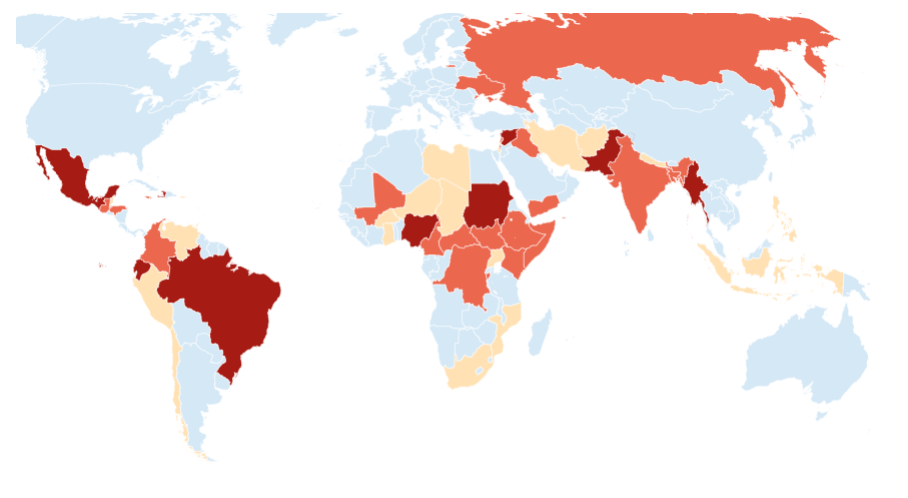 Con estos criterios, la organización ofrece un panorama detallado de las situaciones de violencia que afectan a los países en diferentes regiones.