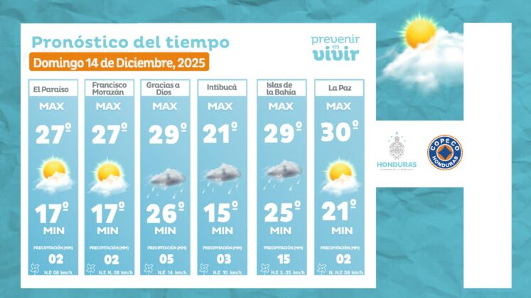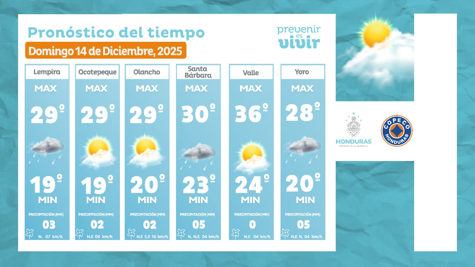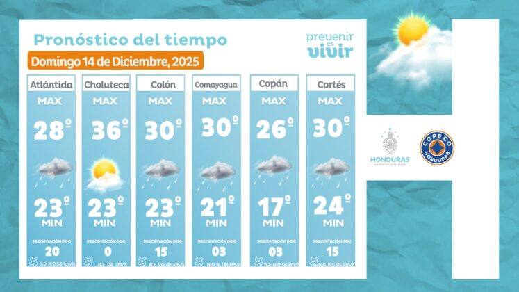 Redacción. El Centro de Estudios Atmosféricos, Oceanográficos y Sísmicos (Cenaos) dio a conocer el pronóstico del clima para este domingo 14 de diciembre de 2025 en Honduras.