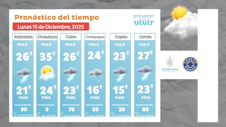 - Tegucigalpa: 24° como máximo, 16° como mínima (05 milímetros).