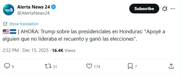 El comentario, publicado en su red Truth Social, se suma a una intervención previa de Trump, hecha una semana antes de las elecciones, en la que pidió a los hondureños votar por Nasry Asfura, candidato del Partido Nacional (PN), a quien calificó como el “único verdadero amigo de la libertad”.