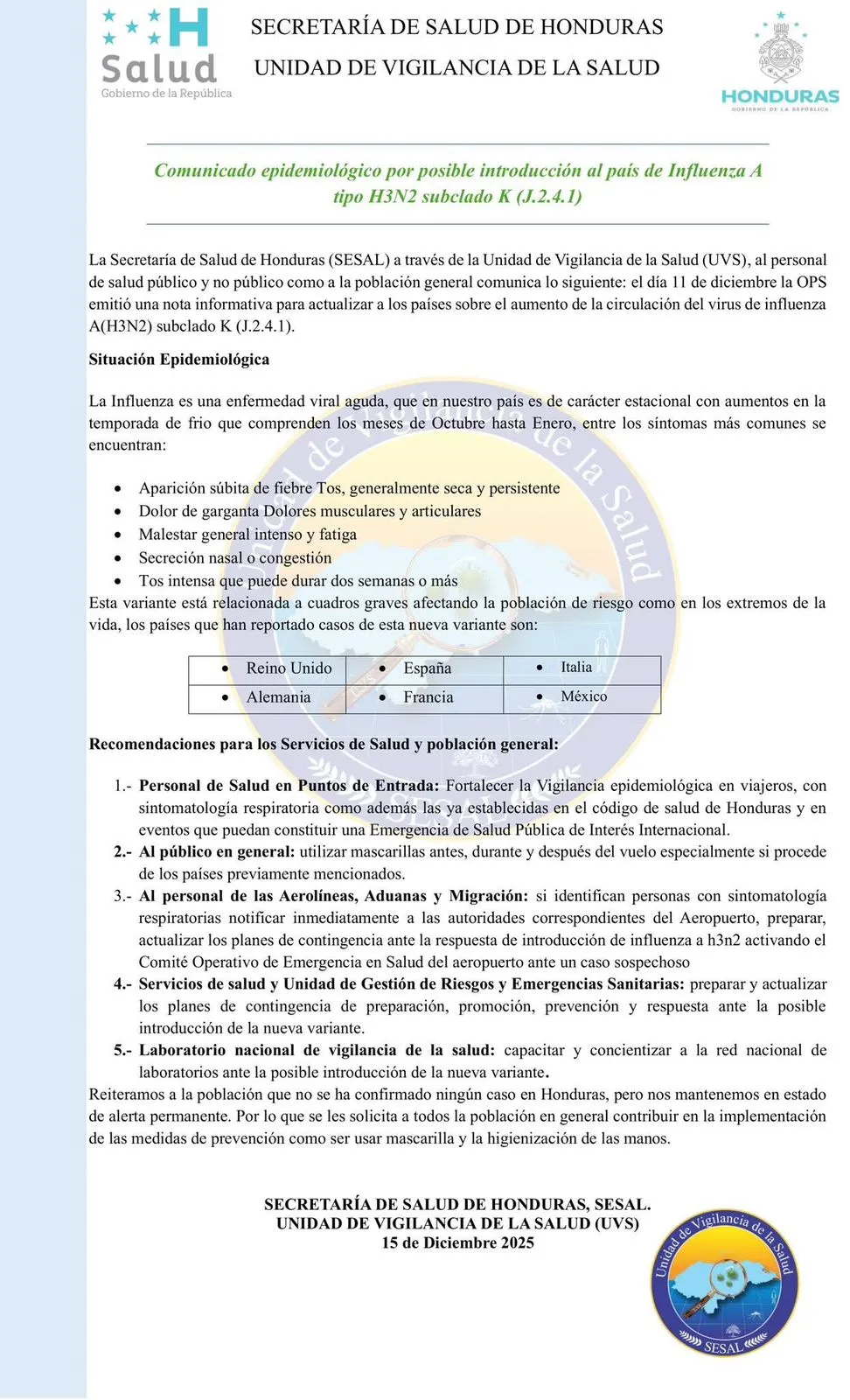 Redacción. La Secretaría de Salud (Sesal) emitió una alerta y ordenó la preparación inmediata de un plan de contingencia ante el aumento de la circulación global del virus de influenza A (H3N2), subclade K (J.2.4.1).