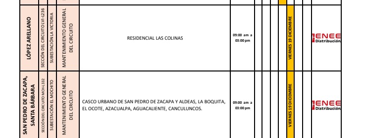Redacción. La Empresa Nacional de Energía Eléctrica (ENEE) anunció a través de sus canales oficiales que este viernes 19 de diciembre se realizarán cortes programados que afectarán varias zonas del país.