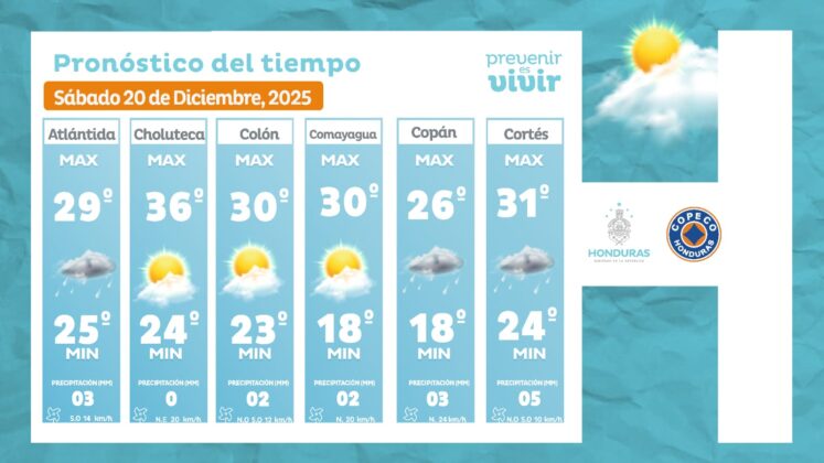 - La Ceiba: 29° como máximo, 25° como mínima (03 milímetros).