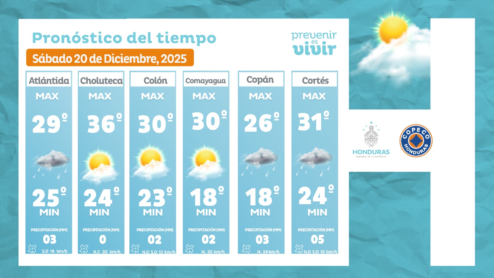 - San Pedro Sula: 31° como máximo, 24° como mínima (05 milímetros).