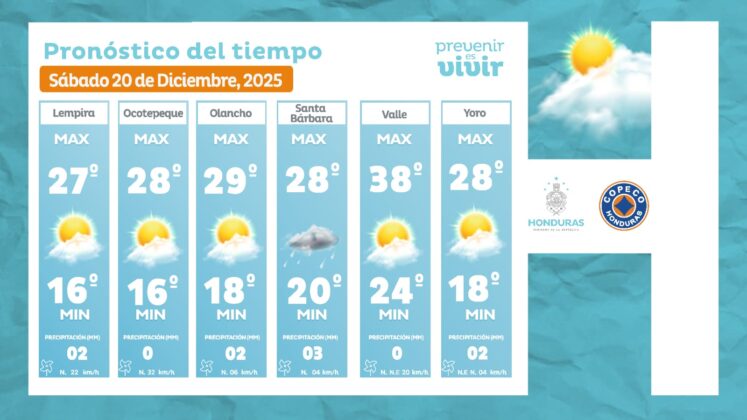 Redacción. El Centro Nacional de Estudios Atmosféricos, Oceanográficos y Sísmicos (Cenaos) emitió el pronóstico del tiempo para este sábado 20 de diciembre, destacando la continuación del viento del noreste que está ingresando humedad proveniente del mar Caribe hacia el territorio nacional.