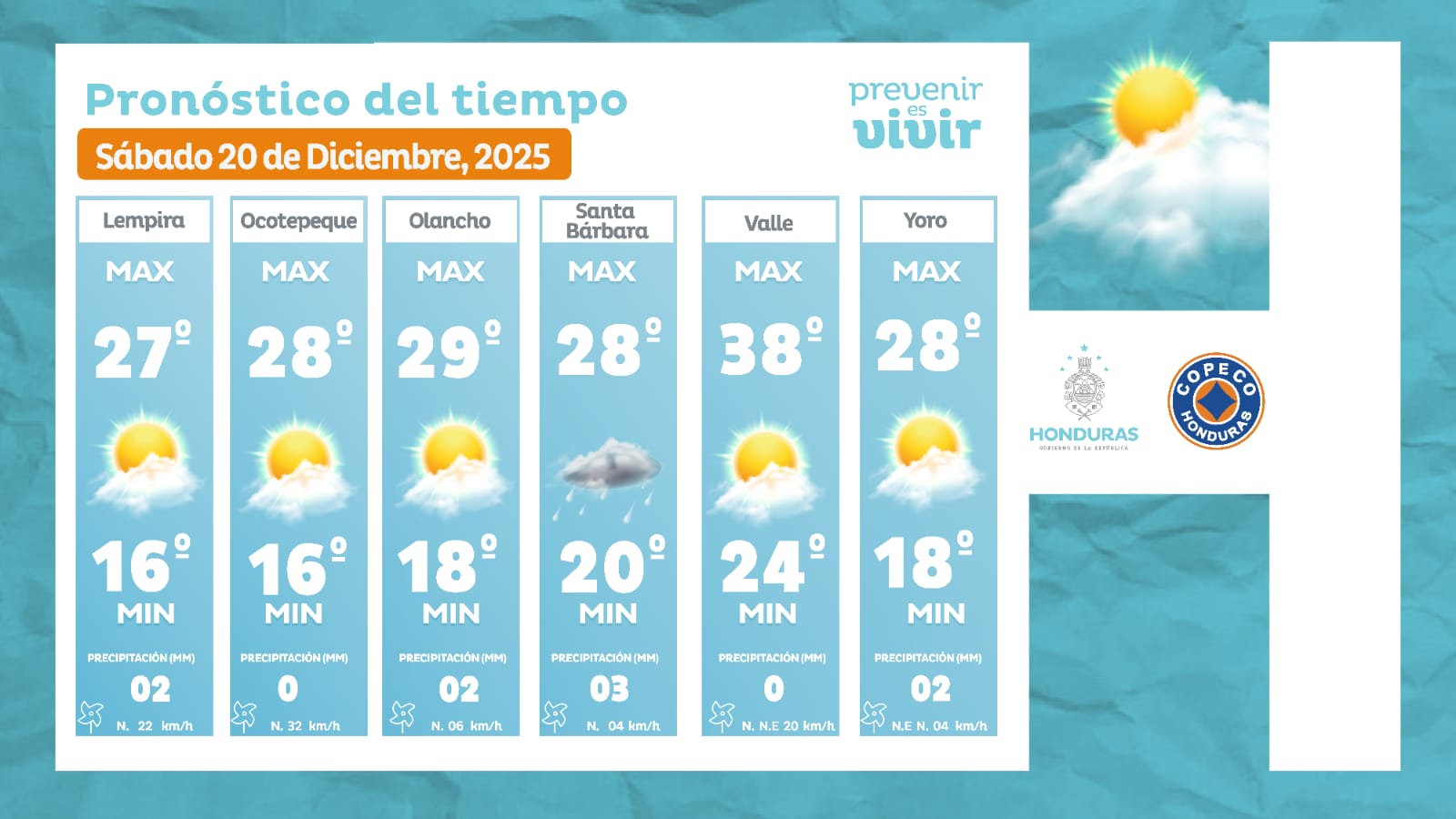 - Tegucigalpa: 26° como máximo, 16° como mínima (0 milímetros).