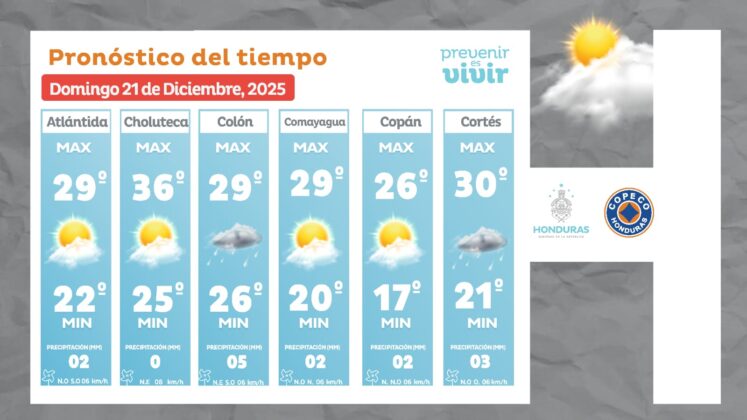 De igual interés: Pronóstico del clima: lluvias débiles y chubascos en varias regiones de Honduras