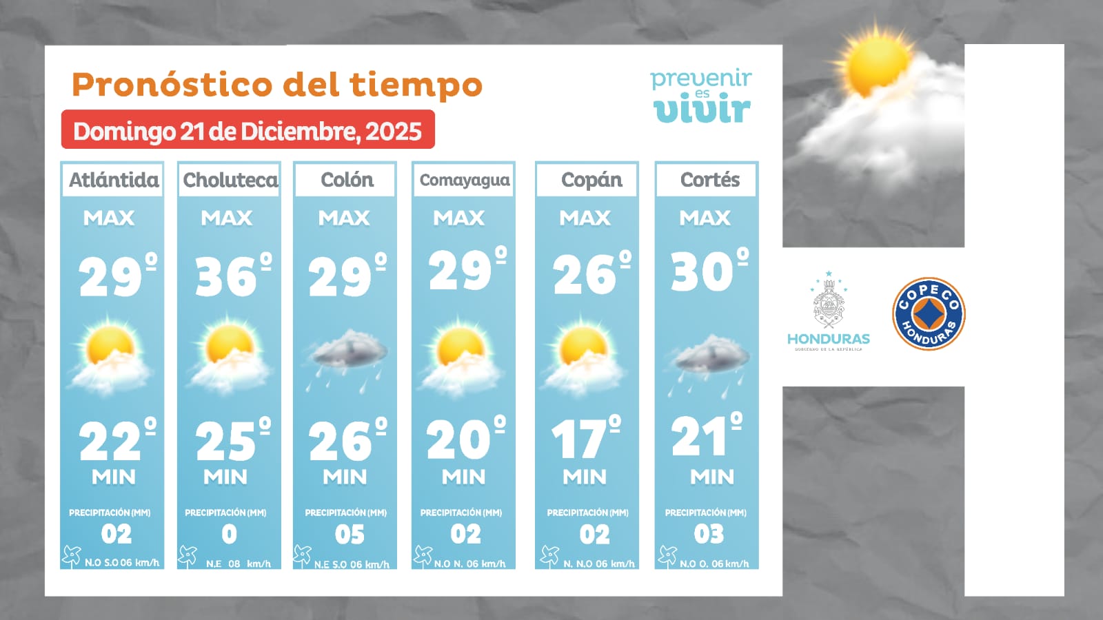 - San Pedro Sula: 30° como máximo, 21° como mínima (03 milímetros).