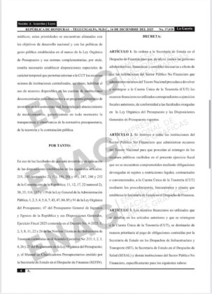 Según el decreto, publicado en el Diario Oficial La Gaceta, la Secretaría de Finanzas será la responsable de coordinar los procedimientos administrativos, financieros y contables necesarios para asegurar que estos recursos sean reintegrados y utilizados de manera eficiente.