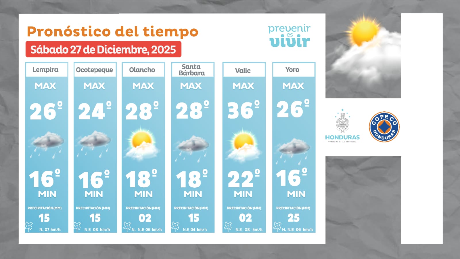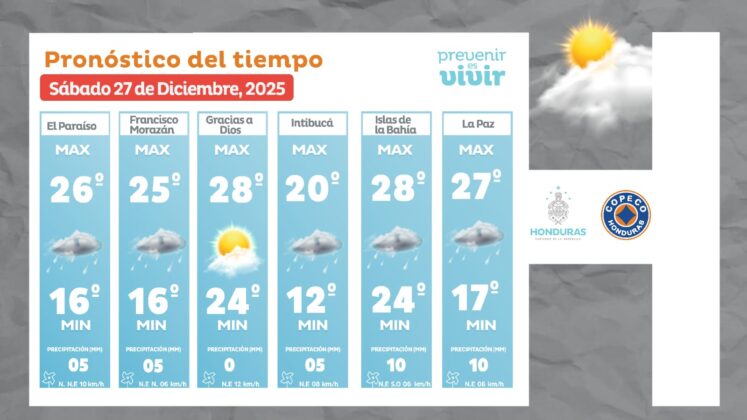 - Tegucigalpa: 25° como máximo, 16° como mínima (05 milímetros).