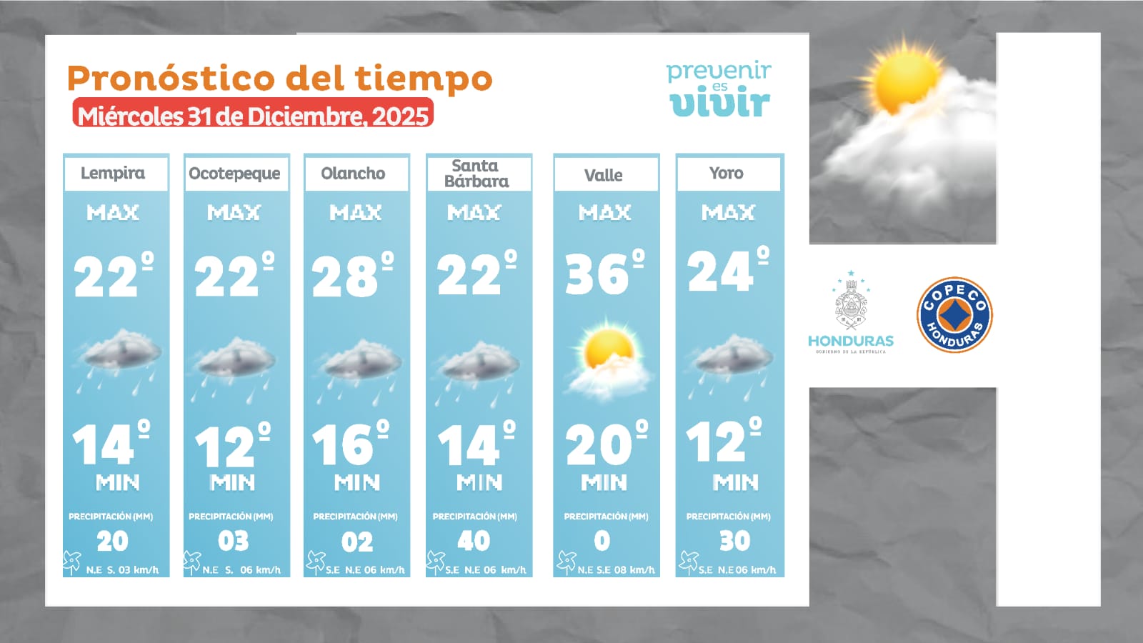 - Lempira: 22° como máxima, 14° como mínima.