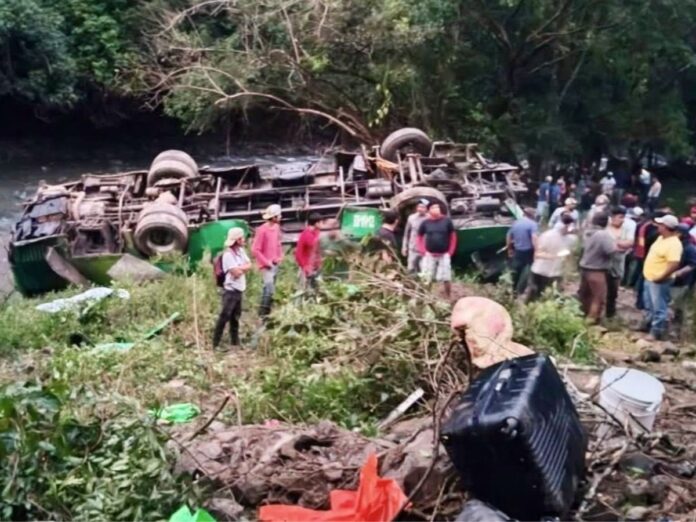 Al arribar al sitio, los cuerpos de rescate encontraron la unidad siniestrada tras haberse desbarrancado, volcado y terminado su trayectoria en un río cercano, lo que complicó las labores de auxilio.