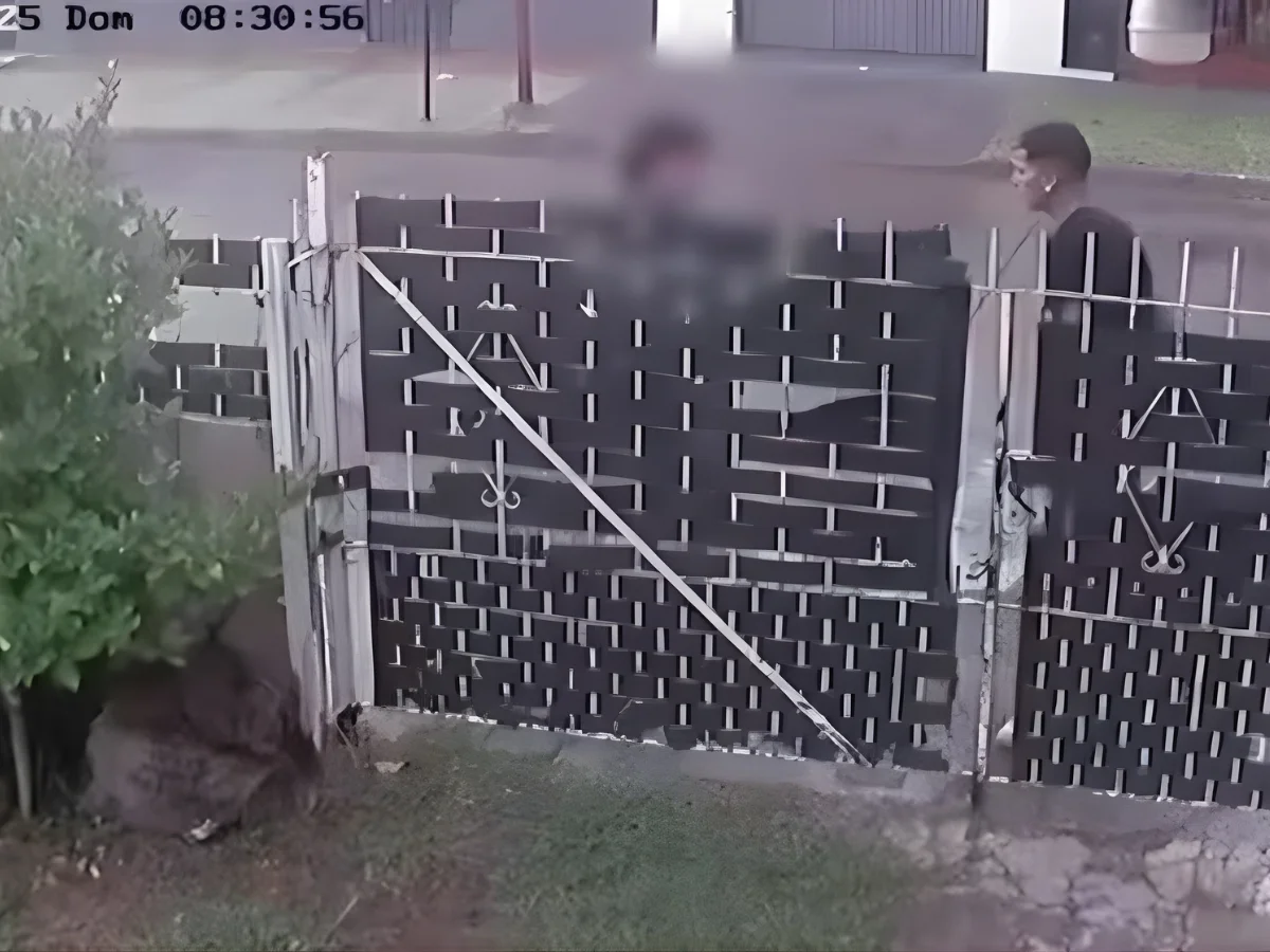 La cámara de seguridad de una vivienda capturó la secuencia del hecho. Cuando el joven advirtió que el robo era inminente, optó por lanzar el celular dentro de la casa de un vecino.