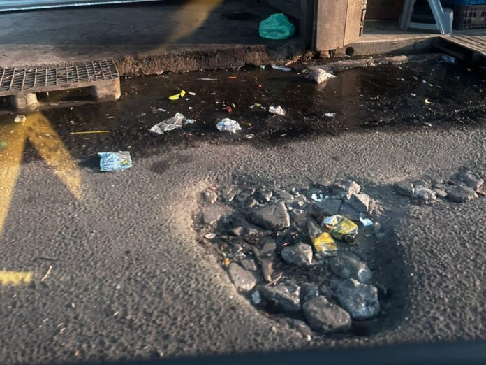 Conductores deben reducir drásticamente la velocidad, mientras que peatones deben bajar a la calle o caminar entre charcos para evitar caer en el agujero.