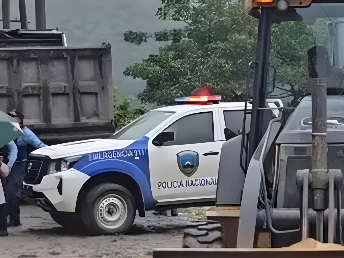 Una patrulla policial mantiene la seguridad en el perímetro, supervisando las labores de limpieza y coordinando el flujo vehicular.