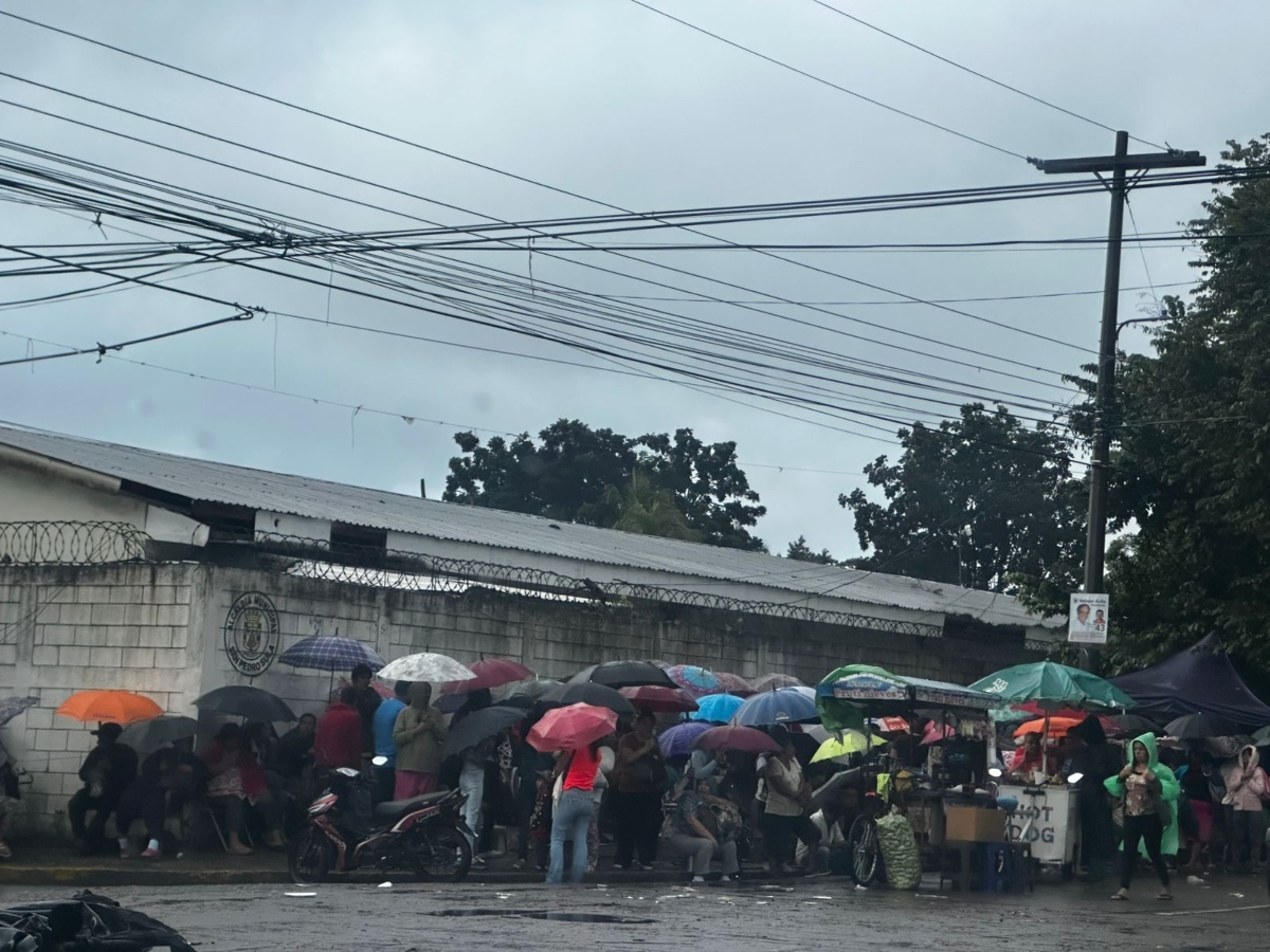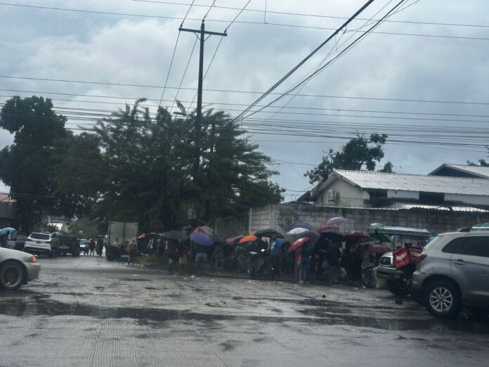 San Pedro Sula, Honduras. Desde la noche del 25 de diciembre, cientos de personas hacen extensas filas en la escuela Soledad Fernández, en San Pedro Sula, para recibir el bono gubernamental, una situación que se agravó por las lluvias registradas en las últimas horas.