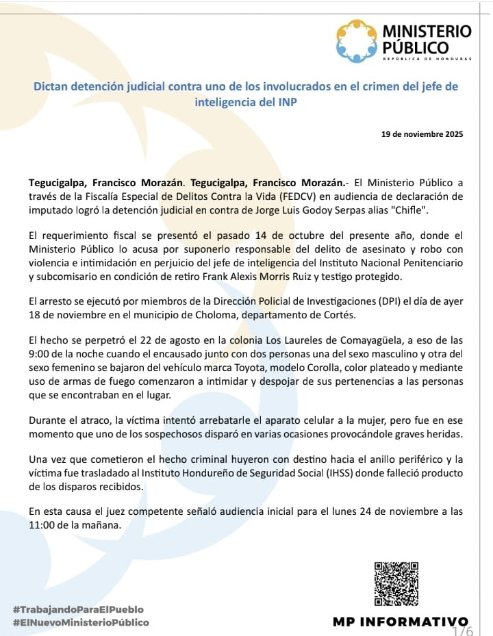 El requerimiento fiscal fue presentado el pasado 14 de octubre, señalando a Jorge Godoy como principal sospechoso de los hechos ocurridos el 22 de agosto en la colonia Los Laureles de Comayagüela, aproximadamente a las 9:00 de la noche.