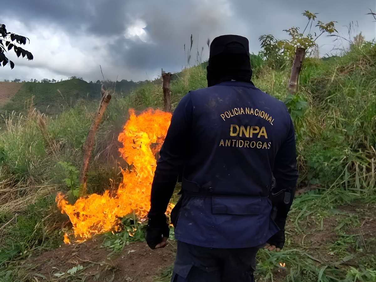 En el mismo sector, los agentes erradicaron e incineraron otra plantación de 37,500 arbustos de coca, con una altura promedio de 1.5 metros. La plantación se extendía sobre cinco manzanas de tierra.