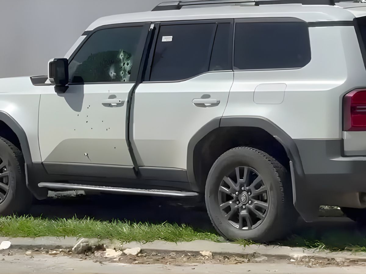 En el cristal lateral se apreciaban al menos ocho perforaciones. Tras el ataque, la camioneta se desplazó varios metros más, probablemente con su conductora ya inerte, y terminó estrellándose en el muro perimetral de la residencial Los Cedros.