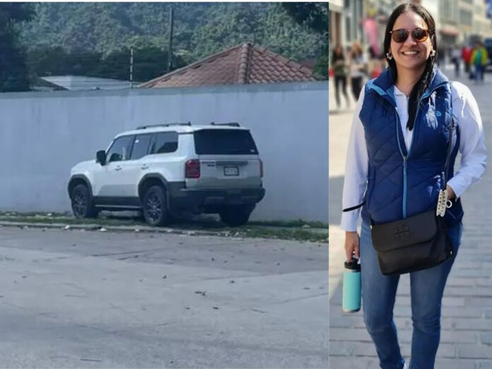 En el cristal lateral se apreciaban al menos ocho perforaciones. Tras el ataque, la camioneta se desplazó varios metros más, probablemente con su conductora ya inerte, y terminó estrellándose en el muro perimetral de la residencial Los Cedros.