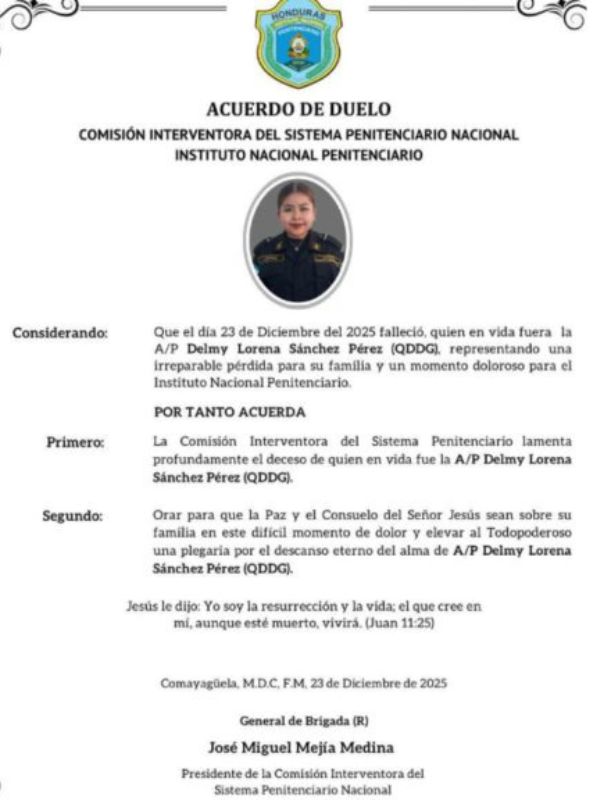 Redacción. Familiares y colegas del Instituto Nacional Penitenciario (INP) confirmaron el sensible fallecimiento de la agente Delmi Sánchez López, originaria de la comunidad de Santa Rosita, en Guajiquiro, La Paz, tras un accidente ocurrido en la capital.